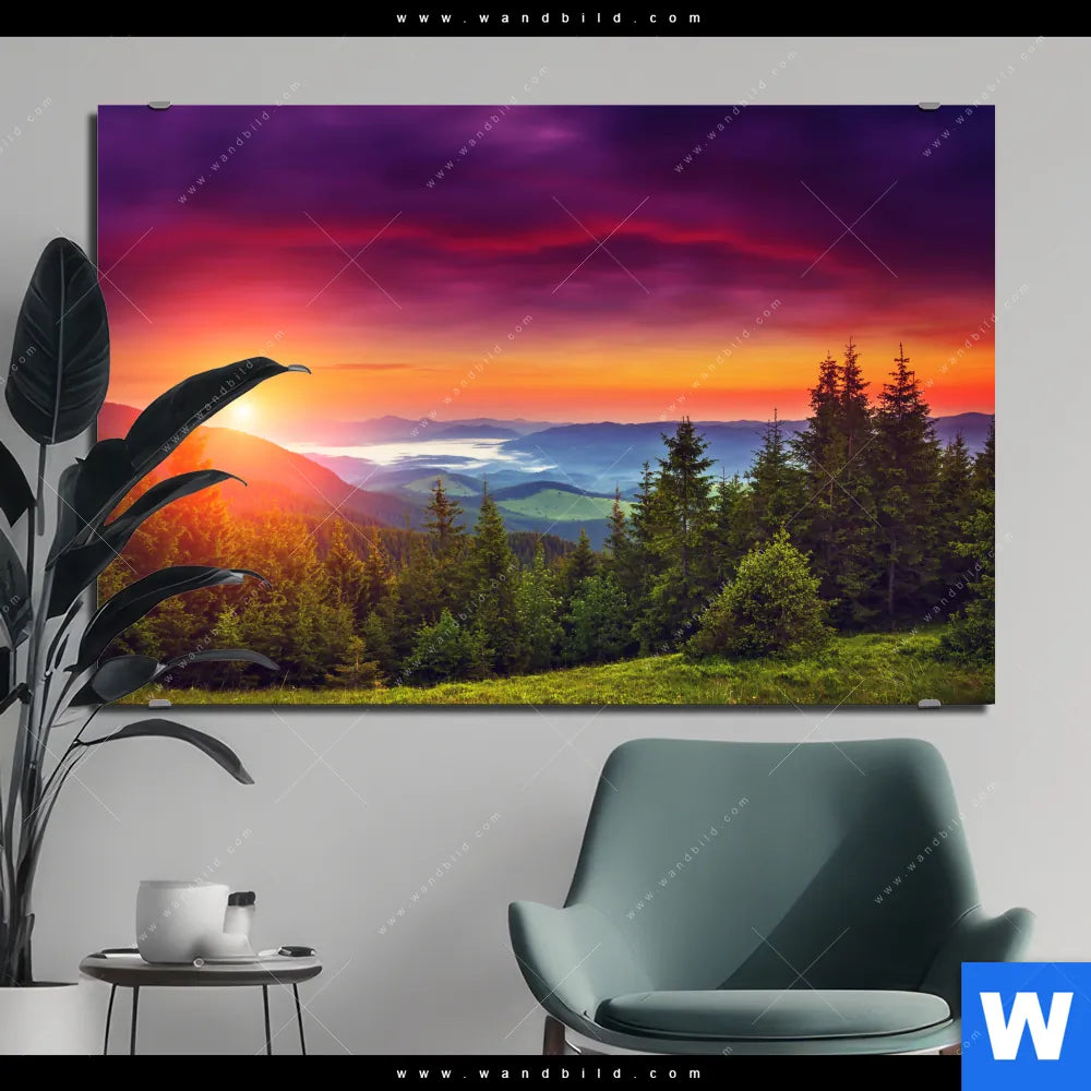 Alu-Dibond Bild | Wald bei Sonnenuntergang | Querformat
