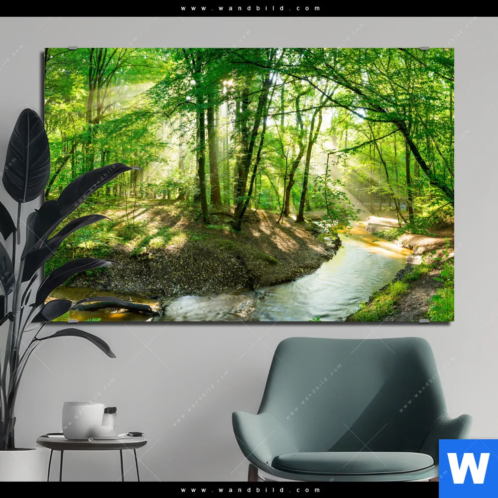 Alu-Dibond Bild | Wald mit Bach | Querformat