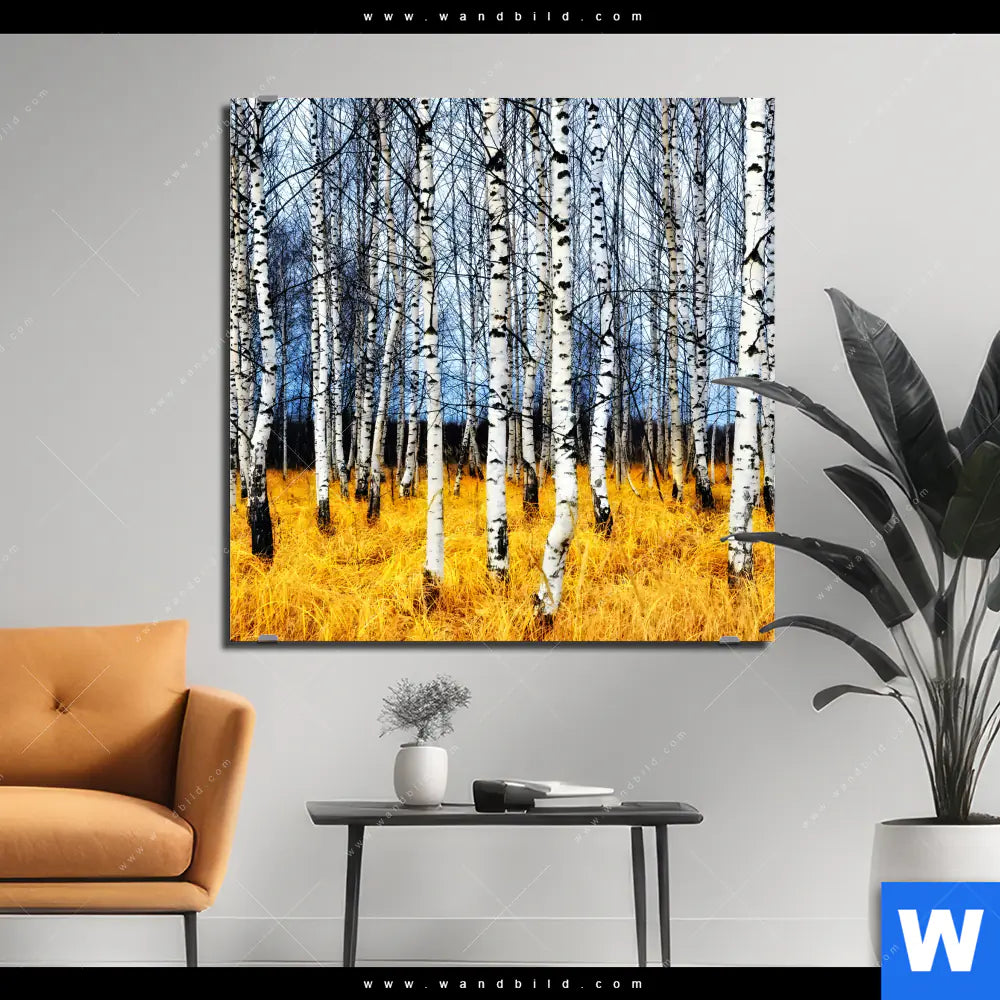 Alu-Dibond Bild | Wald mit Birkenbäumen | Quadrat
