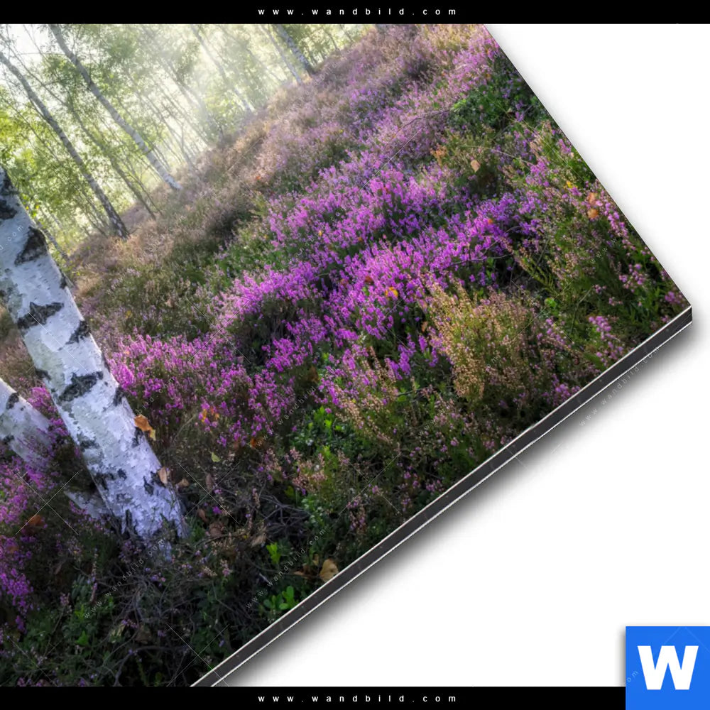 Alu-Dibond Bild | Wald mit Heideblumen | Quadrat