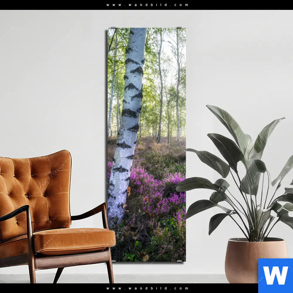 Alu-Dibond Bild | Wald mit Heideblumen | Schmal