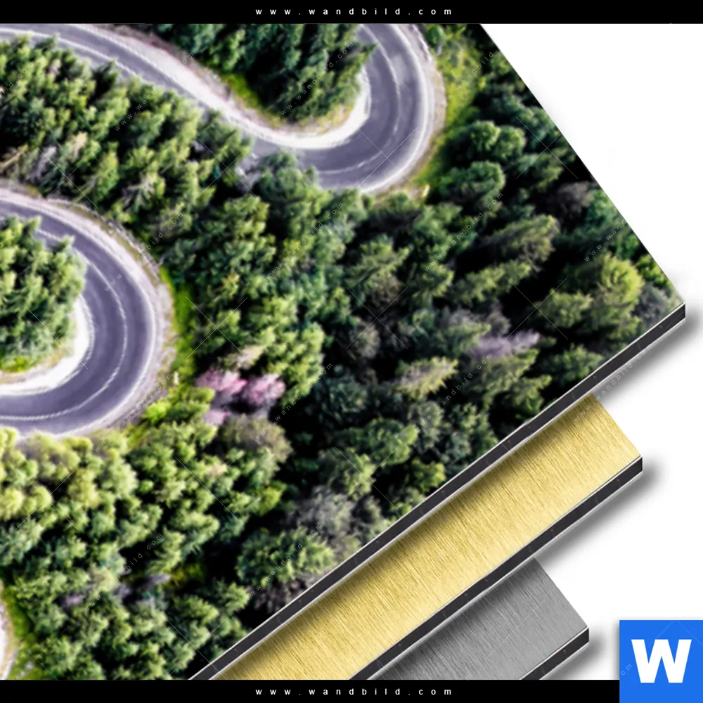 Alu-Dibond Bild | Wald & Straße Luftaufnahme | Schmal