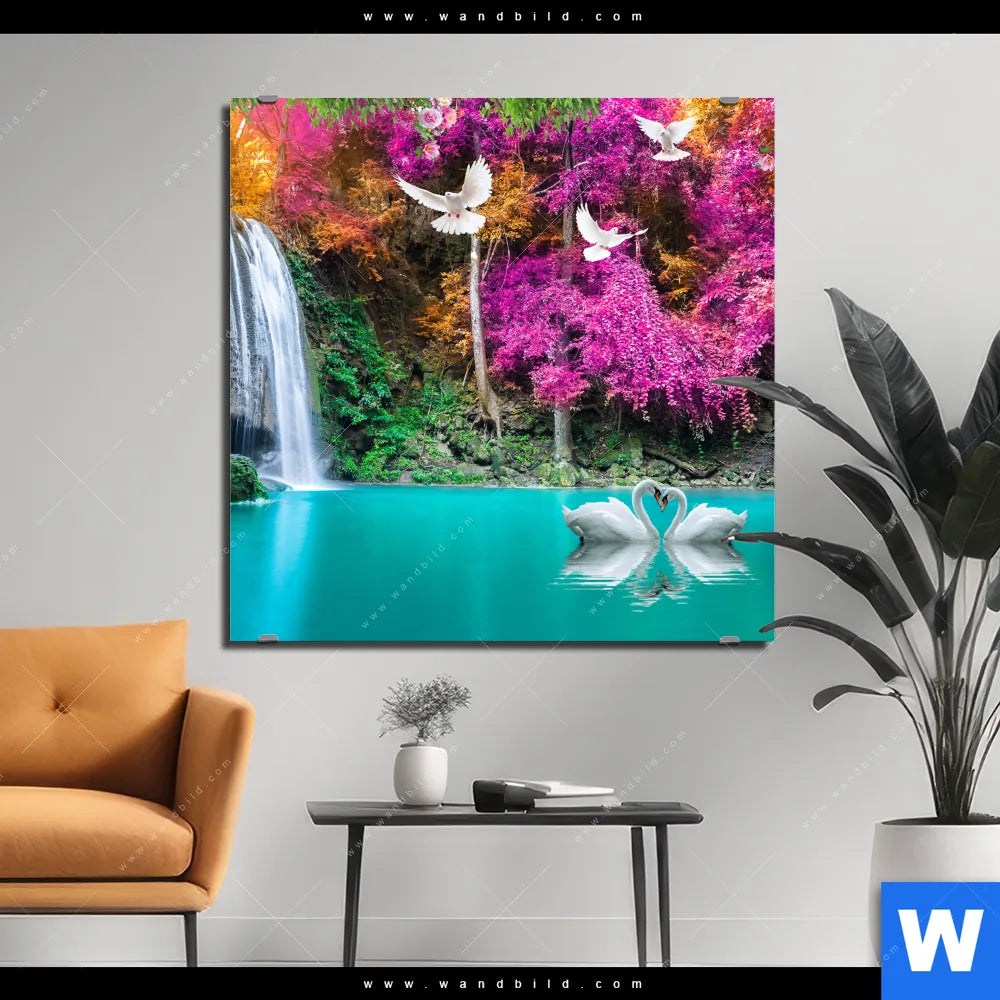Alu-Dibond Bild | Wald & Wasserfall No. 7 | Quadrat