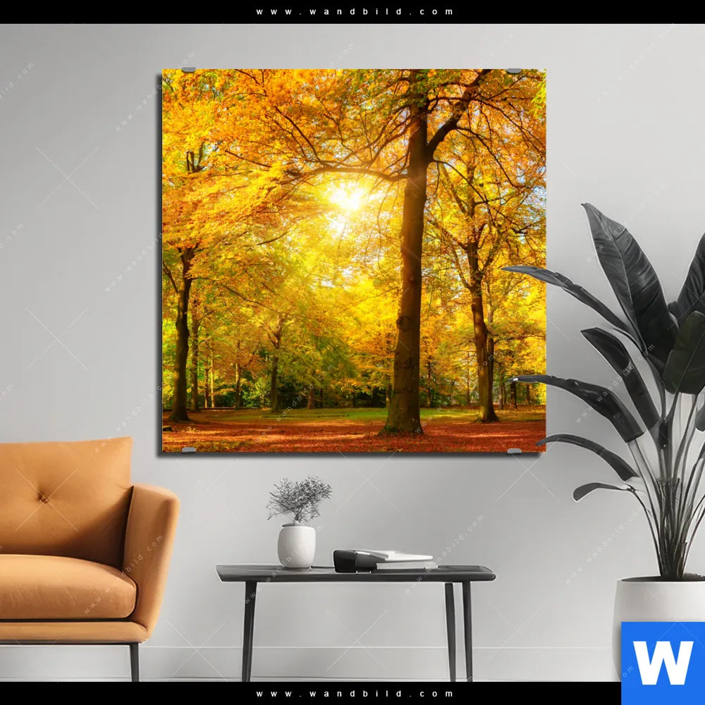 Alu-Dibond Bild | Waldlandschaft im Herbst | Quadrat
