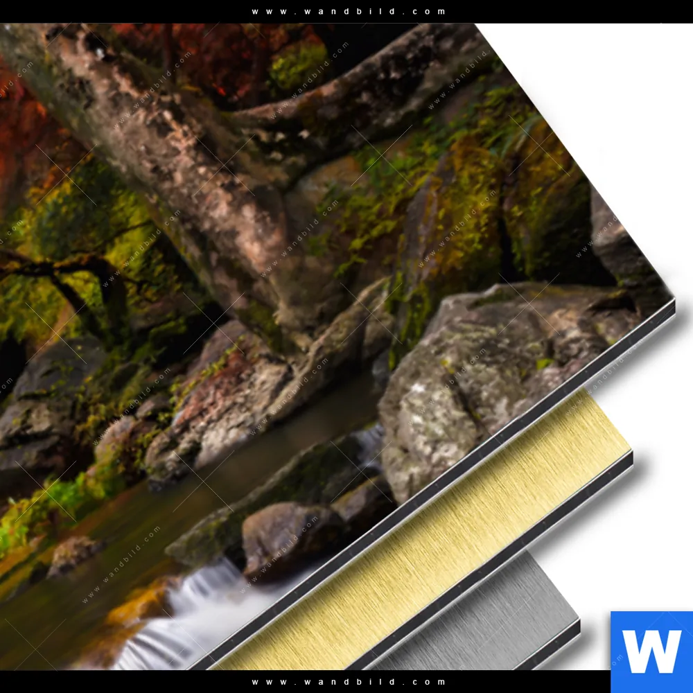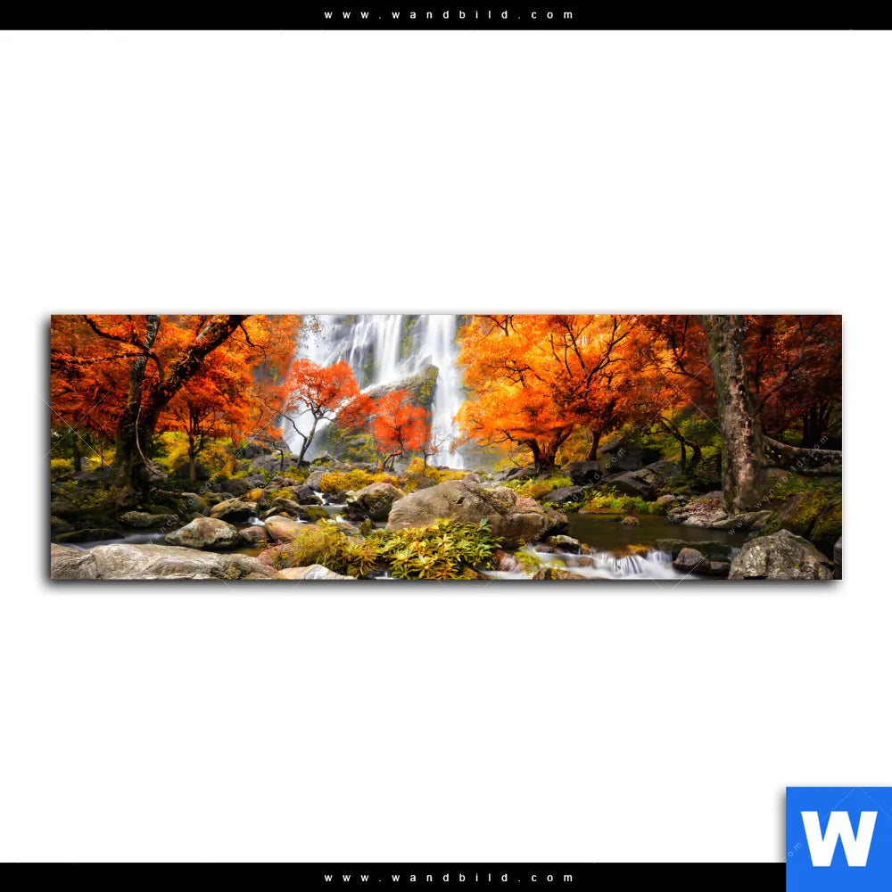 Alu-Dibond Bild | Wasserfall in Herbstlandschaft | Panorama