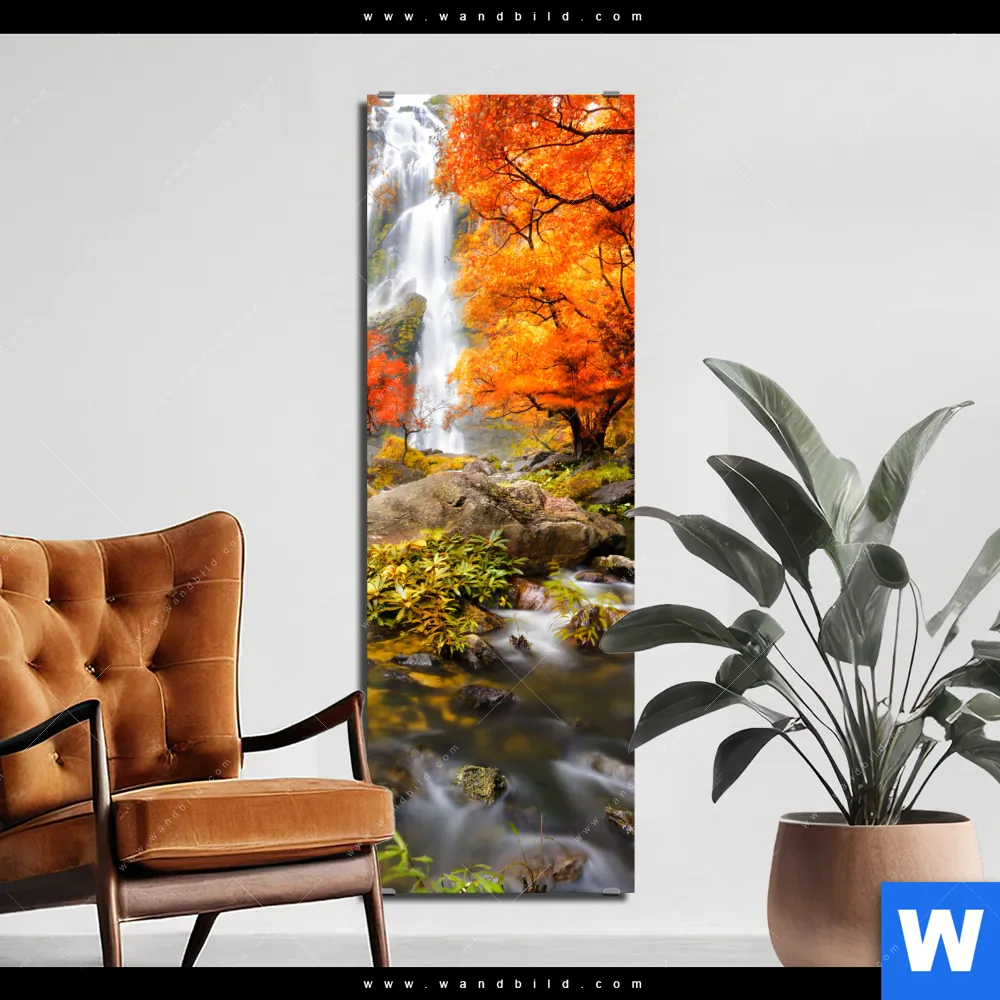 Alu-Dibond Bild | Wasserfall in Herbstlandschaft | Schmal
