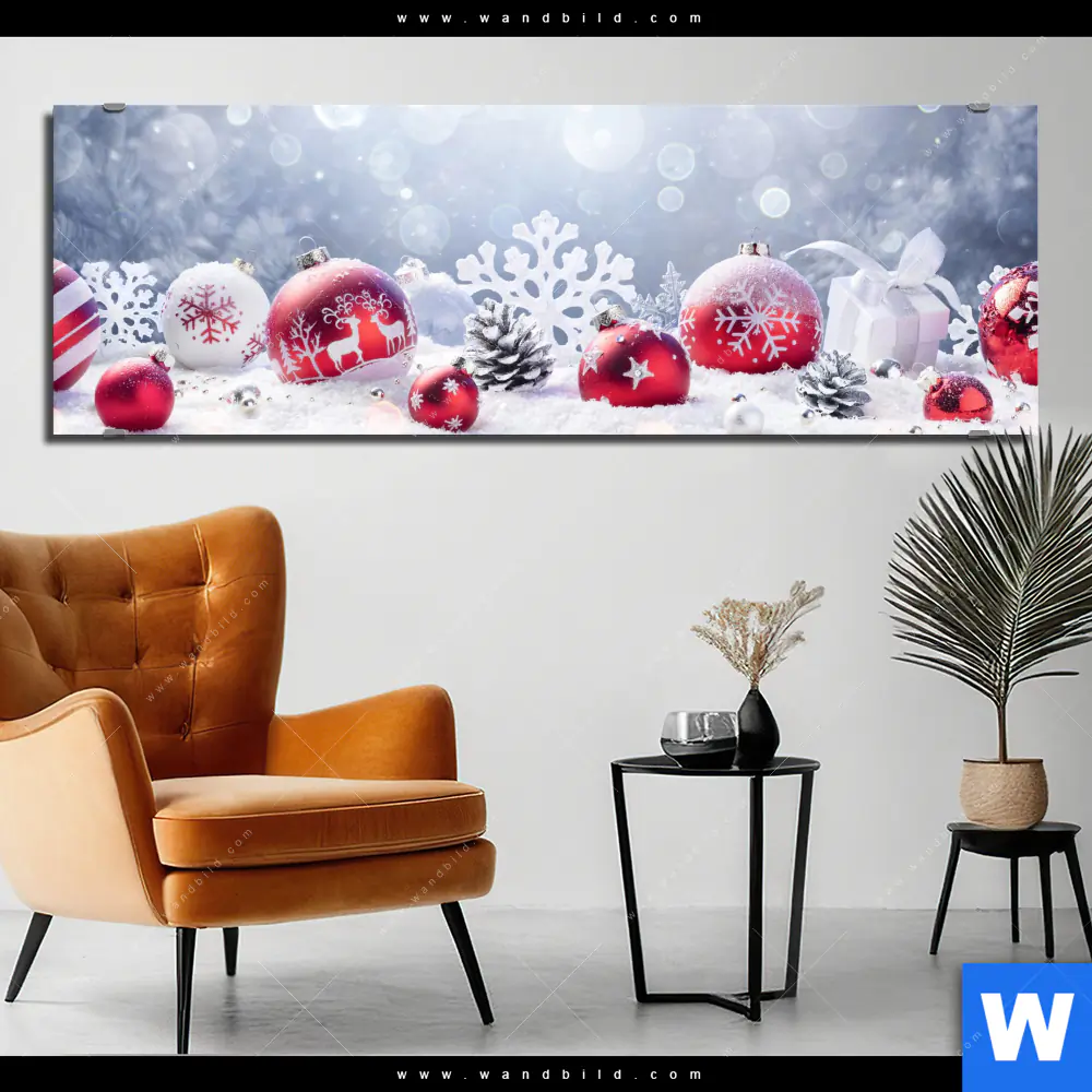 Alu-Dibond Bild | Weihnachtskugeln im Winterwunderland | Panorama