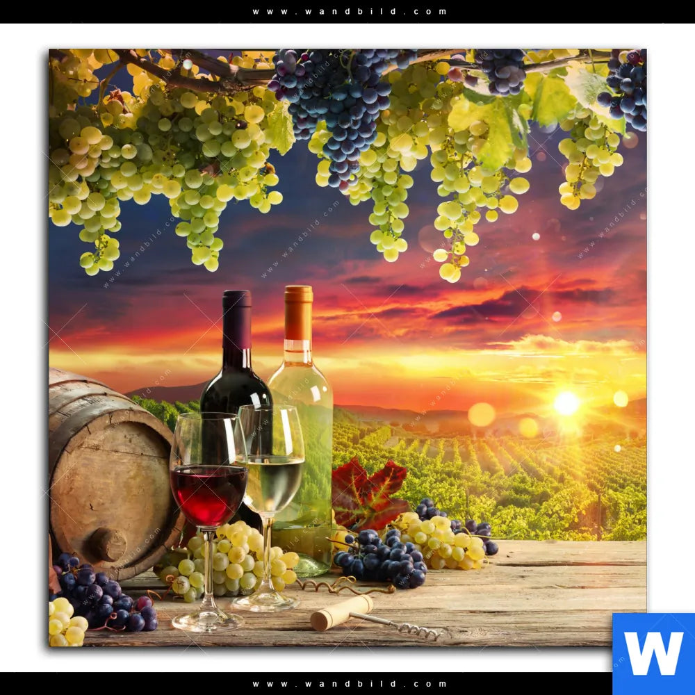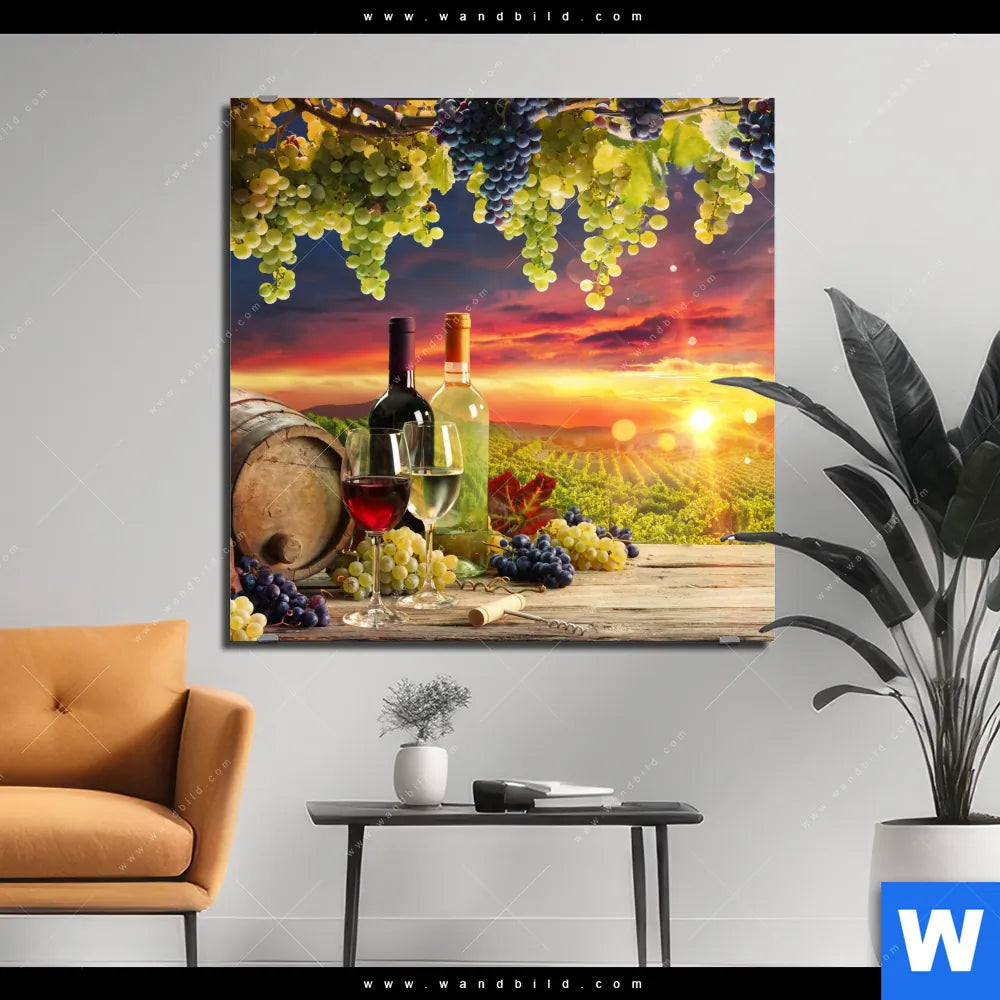 Alu-Dibond Bild | Weinreben im Abendlicht | Quadrat