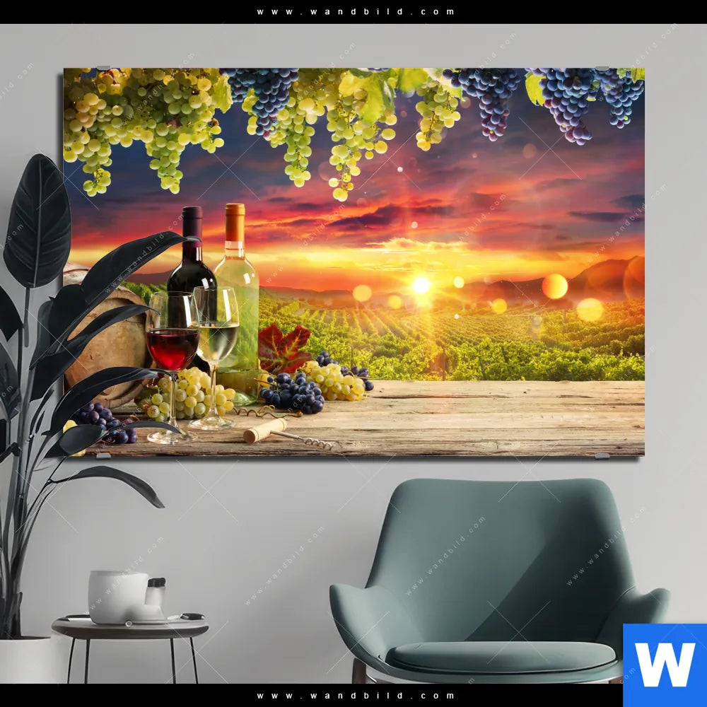Alu-Dibond Bild | Weinreben im Abendlicht | Querformat