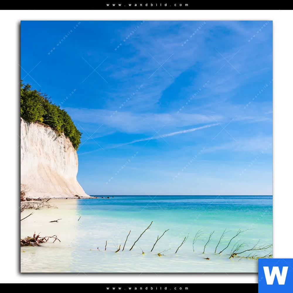 Alu-Dibond Bild | Weiße Kreidefelswand am Meer | Quadrat