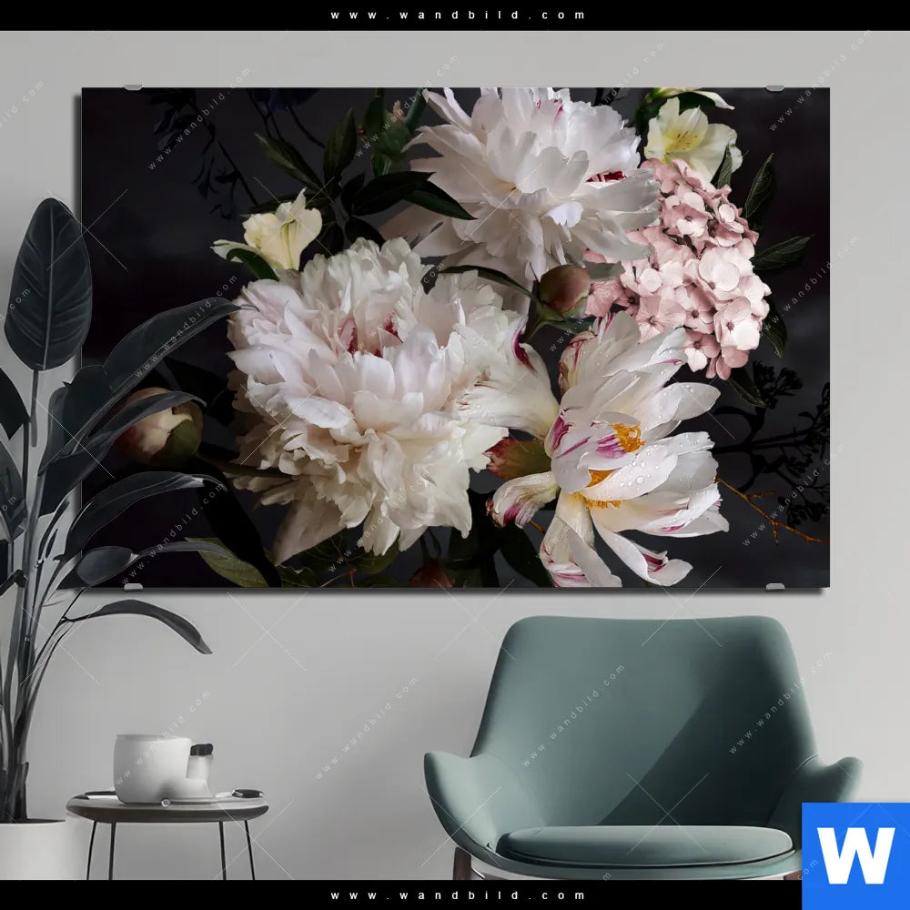 Alu-Dibond Bild | Weiße Pfingstrosen | Querformat