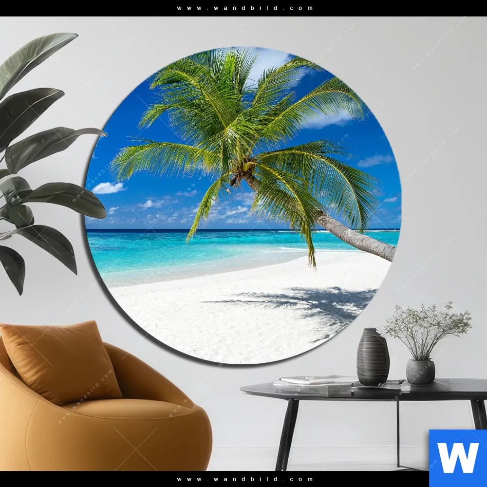 Alu-Dibond Bild | Weißer Strand & Kokospalme | Rund