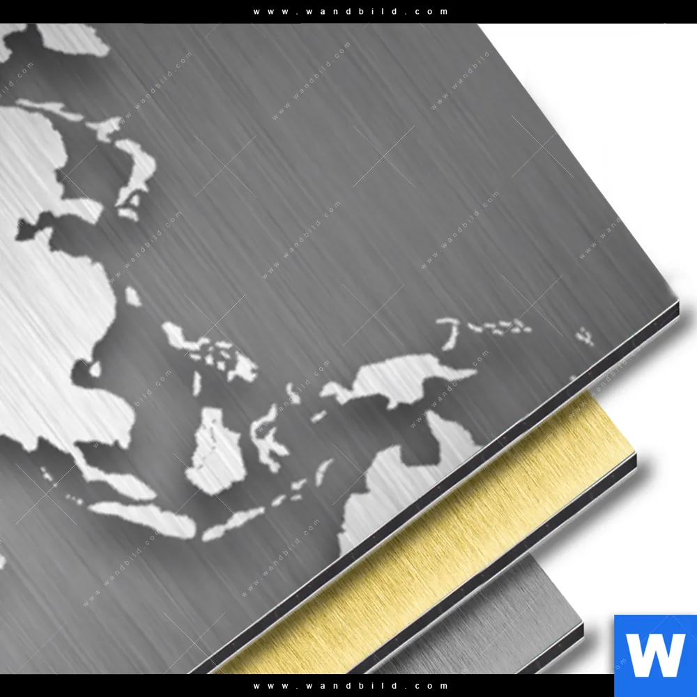 Alu-Dibond Bild | Weltkarte Edelstahloptik | Panorama