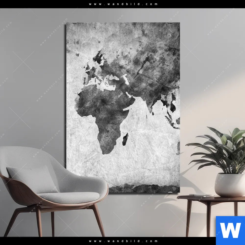 Alu-Dibond Bild | Weltkarte Grautöne | Hochformat