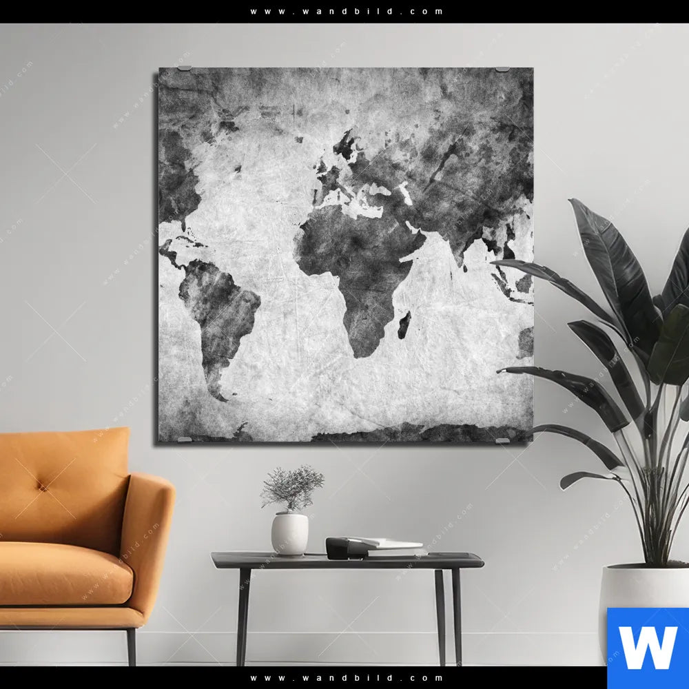 Alu-Dibond Bild | Weltkarte Grautöne | Quadrat