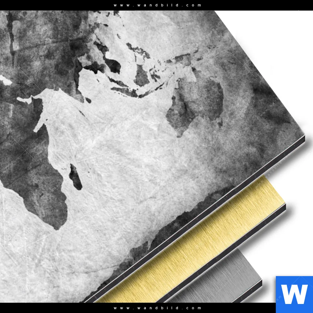 Alu-Dibond Bild | Weltkarte Grautöne | Querformat