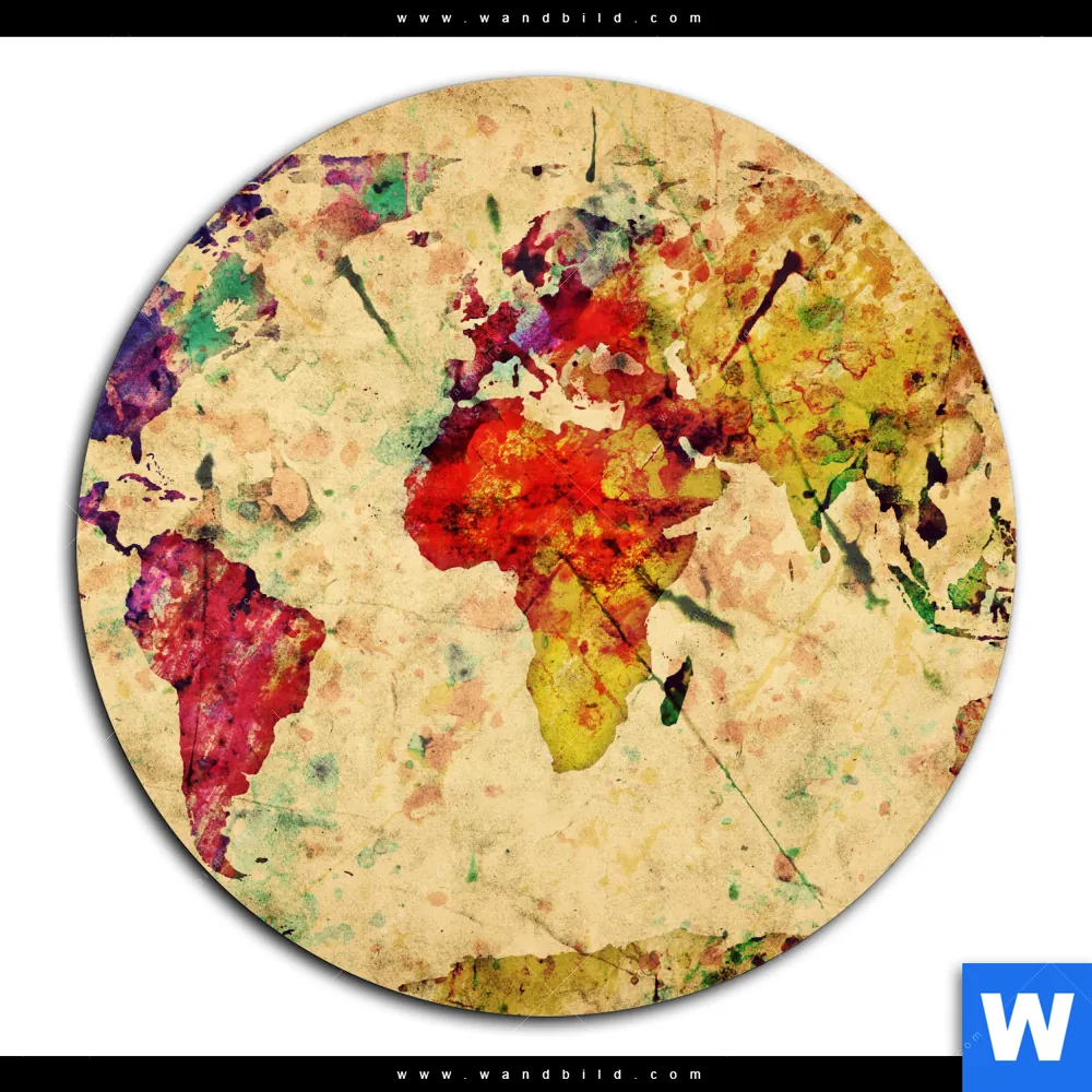 Alu-Dibond Bild | Weltkarte Retro Bunt | Rund