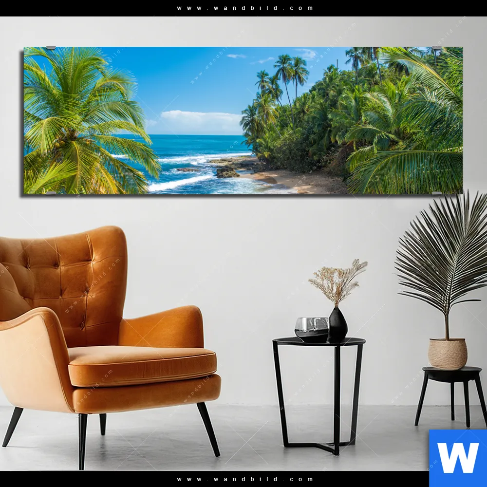 Alu-Dibond Bild | Wilder karibischer Strand | Panorama