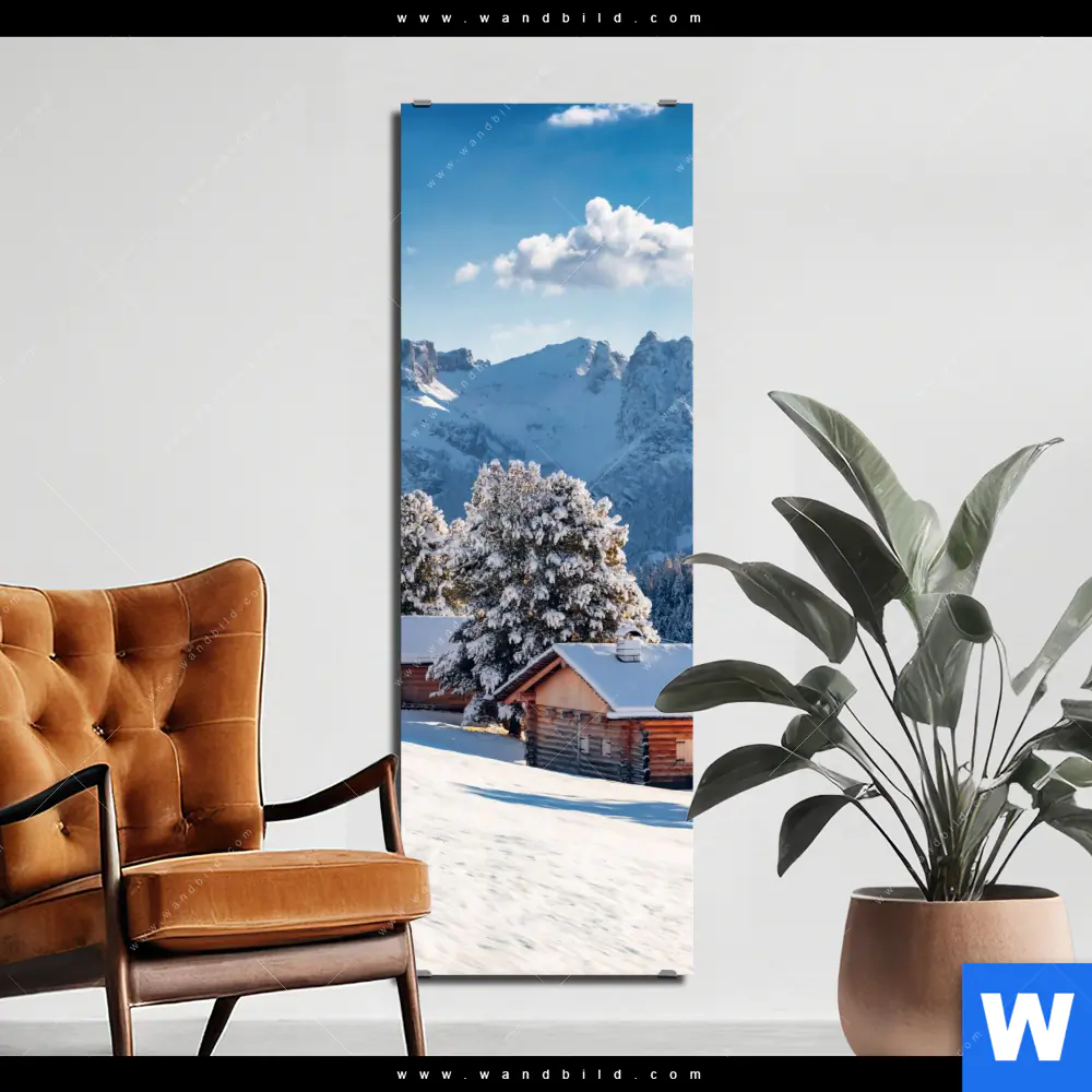 Alu-Dibond Bild | Winteridylle in den Bergen | Schmal