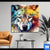 Alu-Dibond Bild | Wolf mit bunten Farbspritzern No. 2 | Quadrat