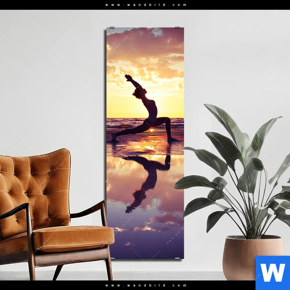 Alu-Dibond Bild | Yoga am lila Strand | Schmal
