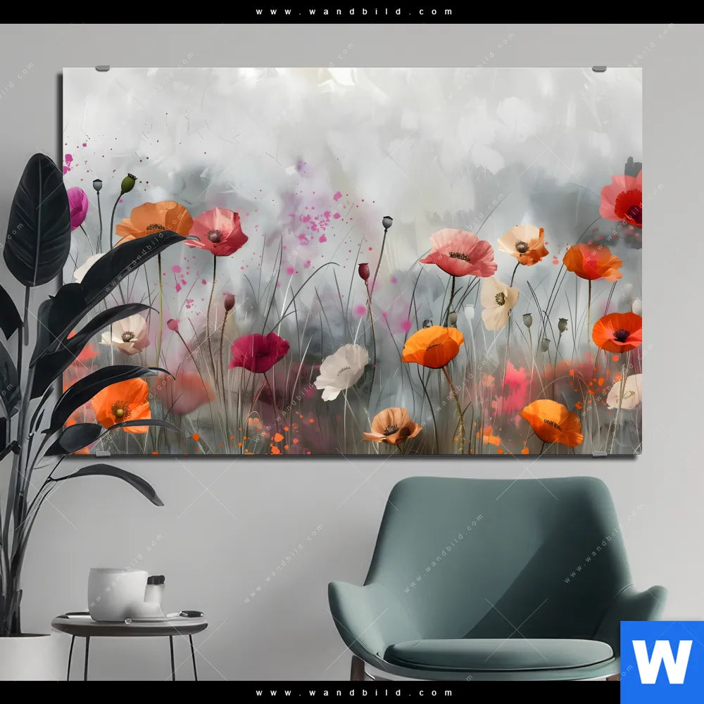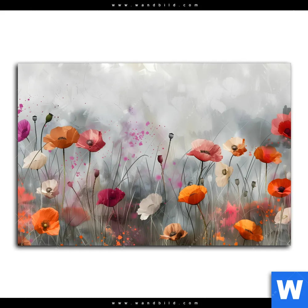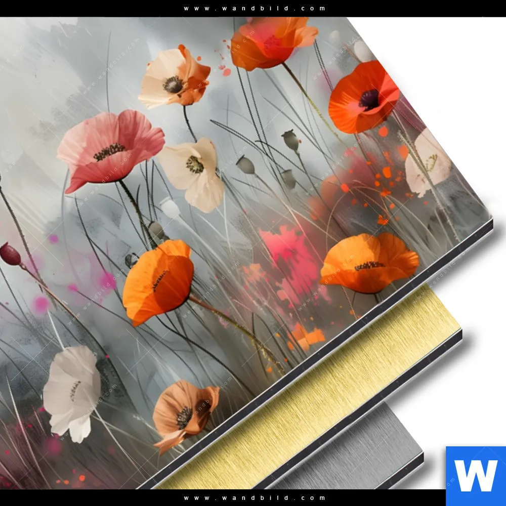 Alu-Dibond Bild | Zarte Mohnblumen im Wind | Querformat