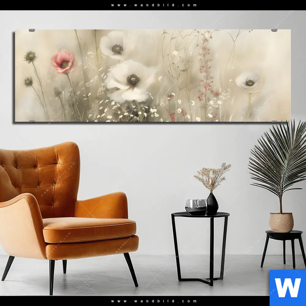 Alu-Dibond Bild | Zarte Wildblumen in Pastelltönen | Panorama