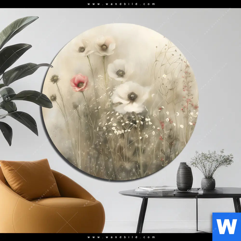 Alu-Dibond Bild | Zarte Wildblumen in Pastelltönen | Rund