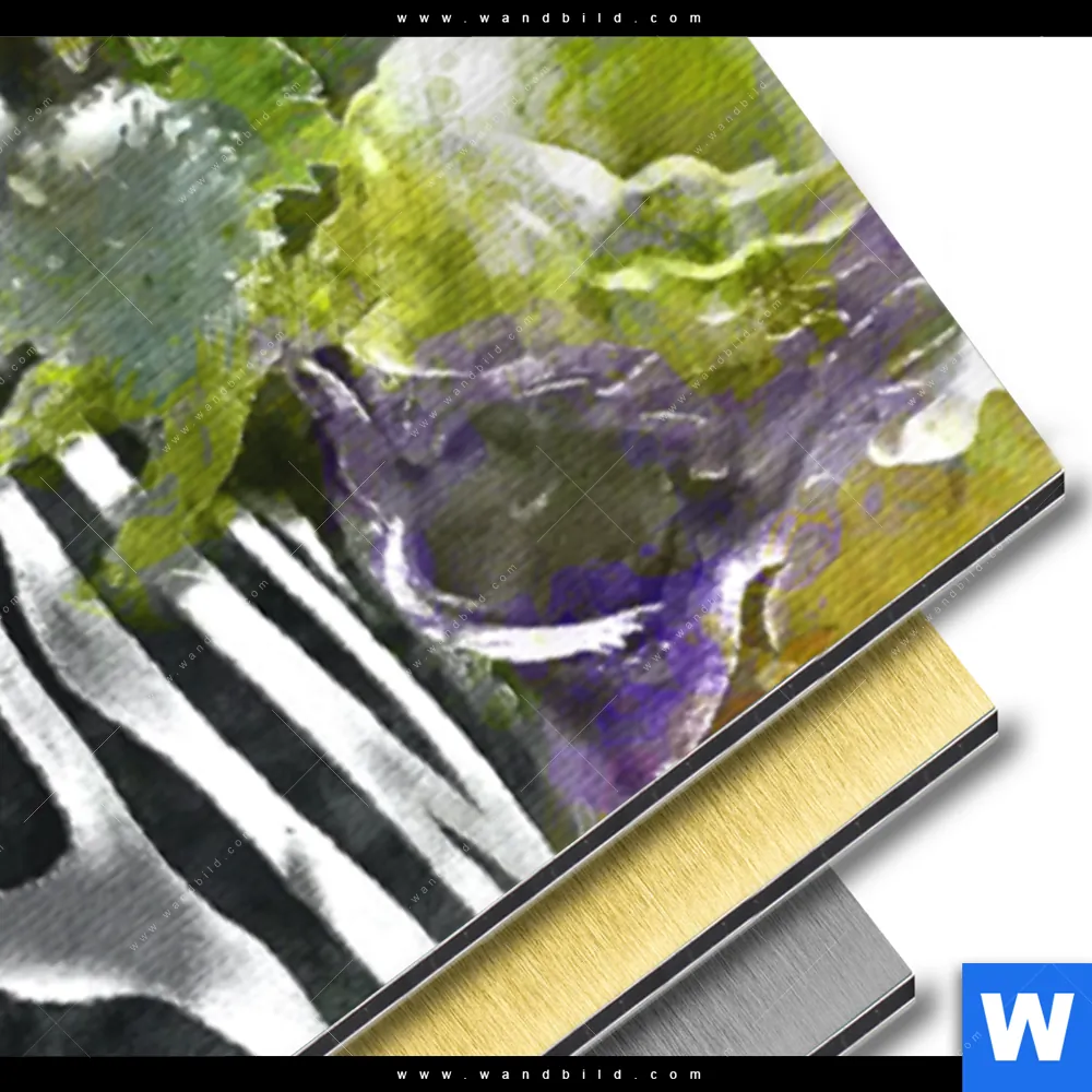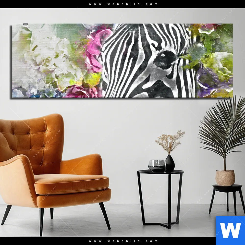 Alu-Dibond Bild | Zebra & Blumen | Panorama