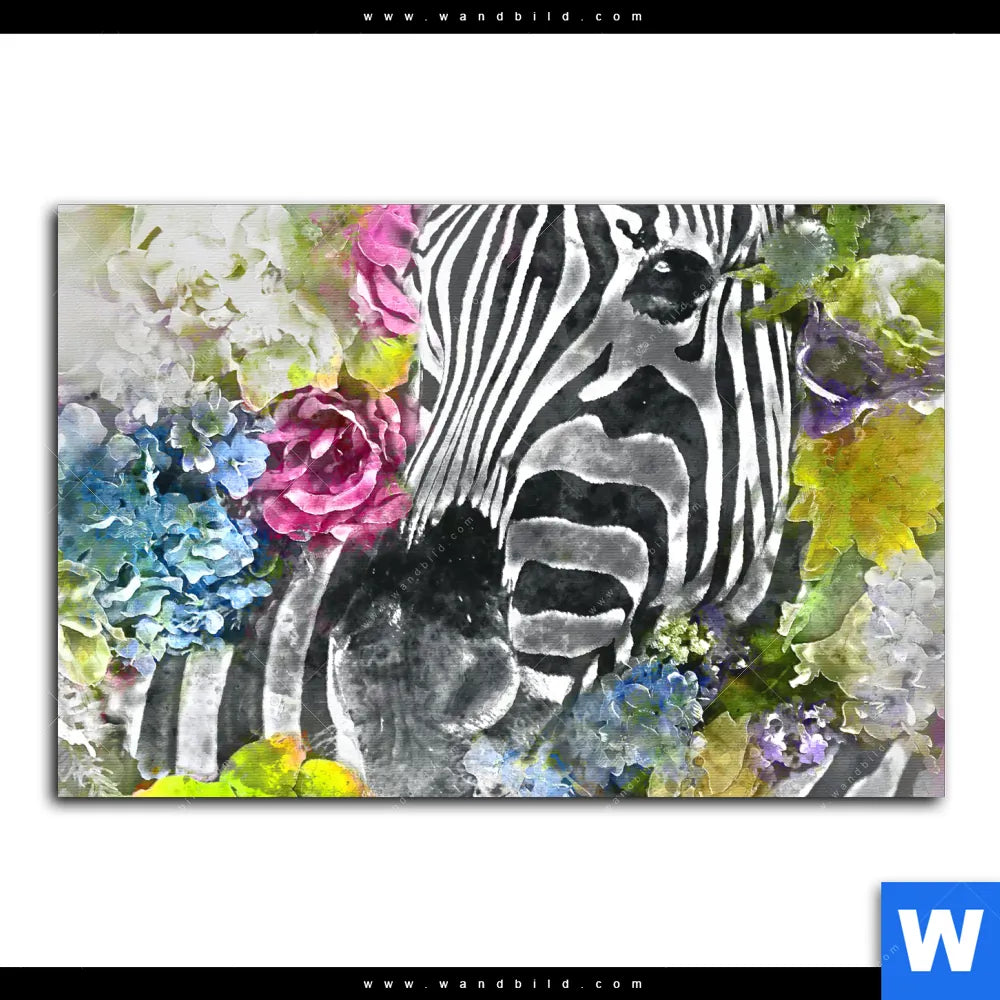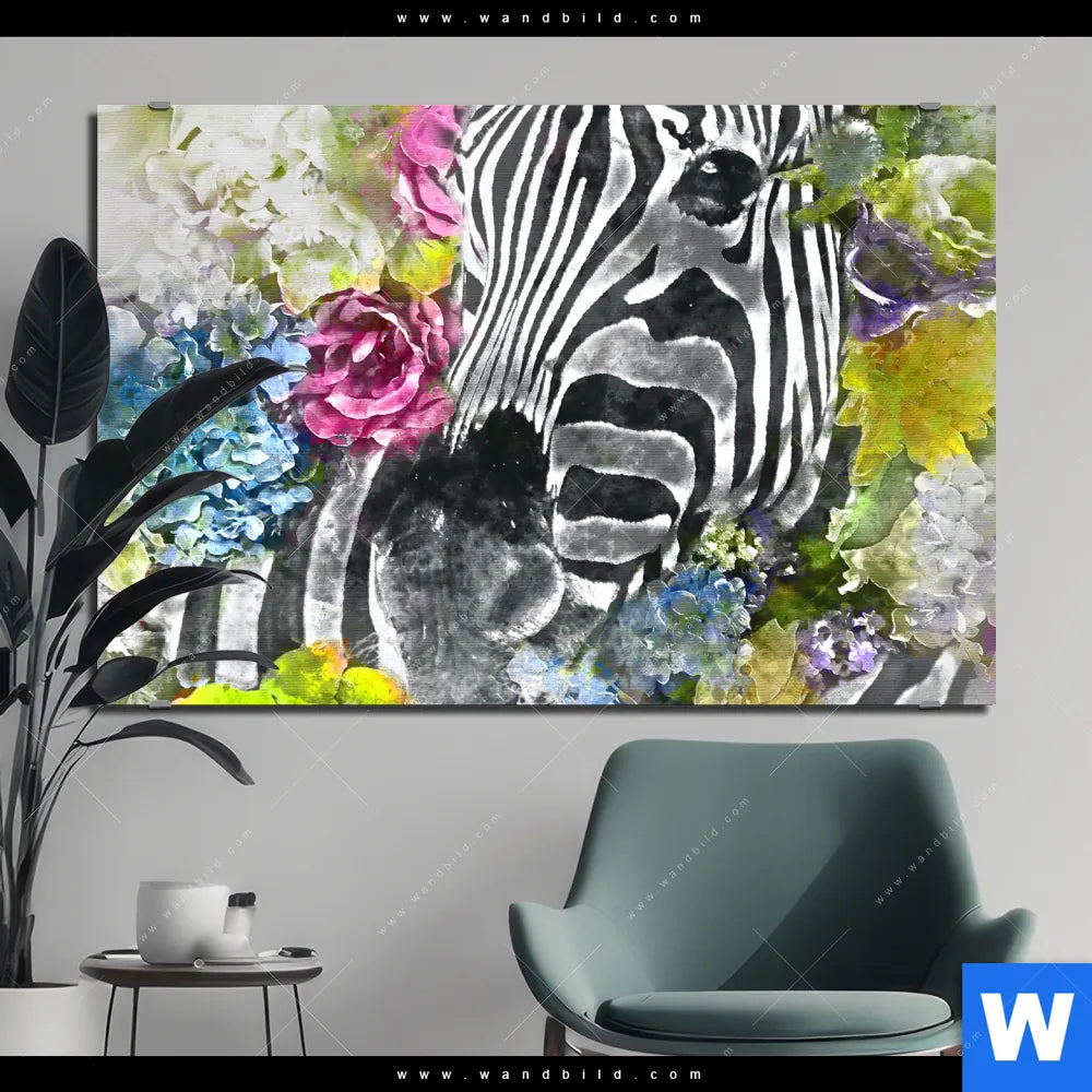 Alu-Dibond Bild | Zebra & Blumen | Querformat