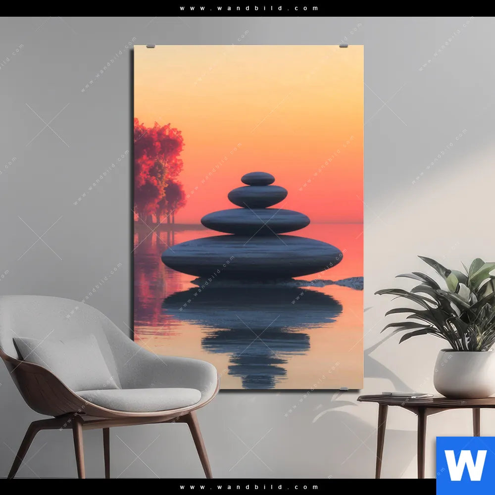 Alu-Dibond Bild | Zen Steine & Sonnenuntergang | Hochformat