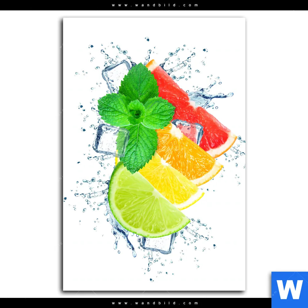 Alu-Dibond Bild | Zitrusfrüchte auf Eis | Hochformat