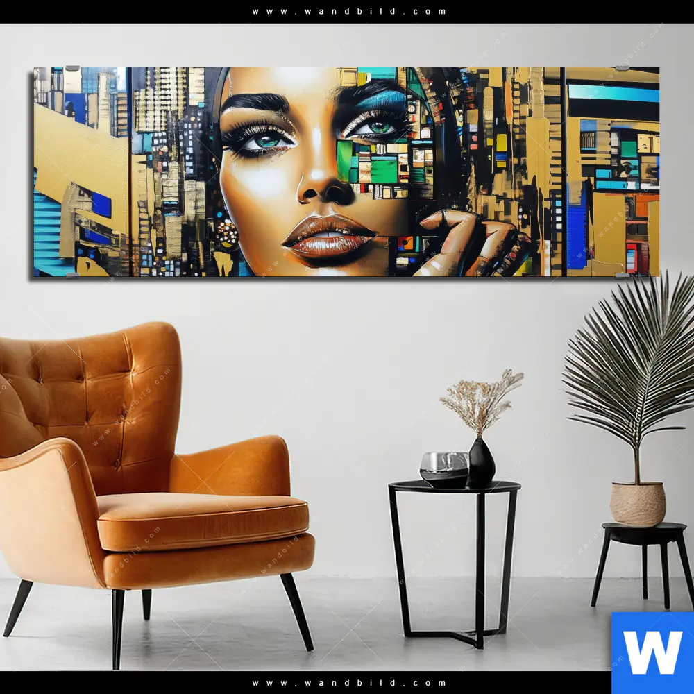 Alu-Dibond Bild | Zoe - Mosaikgesicht im Großstadtlicht | Panorama