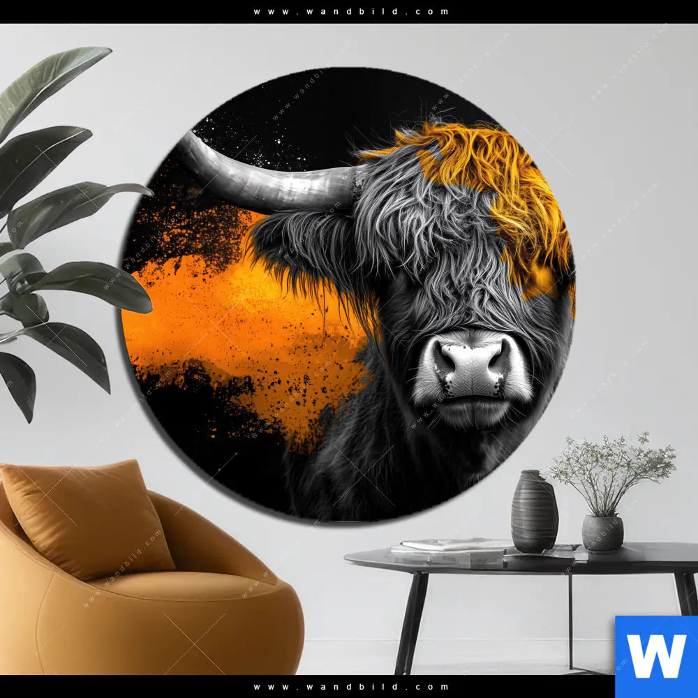 Alu-Dibond Bild | Zotteliges Hochland-Rind | Rund