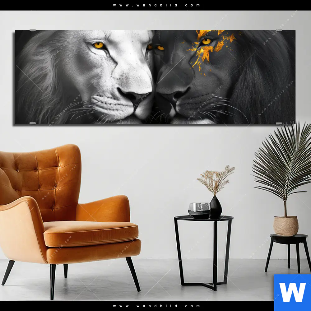 Alu-Dibond Bild | Zwei Löwen Schwarz & Weiß | Panorama