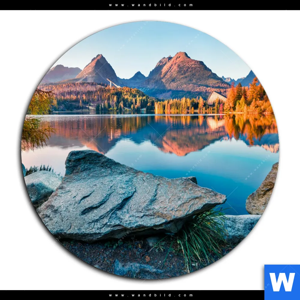 Aluminiumbild gebürstet | Abendszene mit Bergen und See | Rund