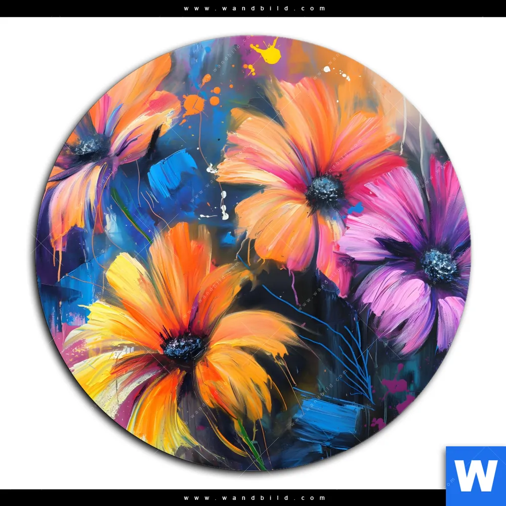 Aluminiumbild gebürstet | Abstrakte Blumenpracht | Rund