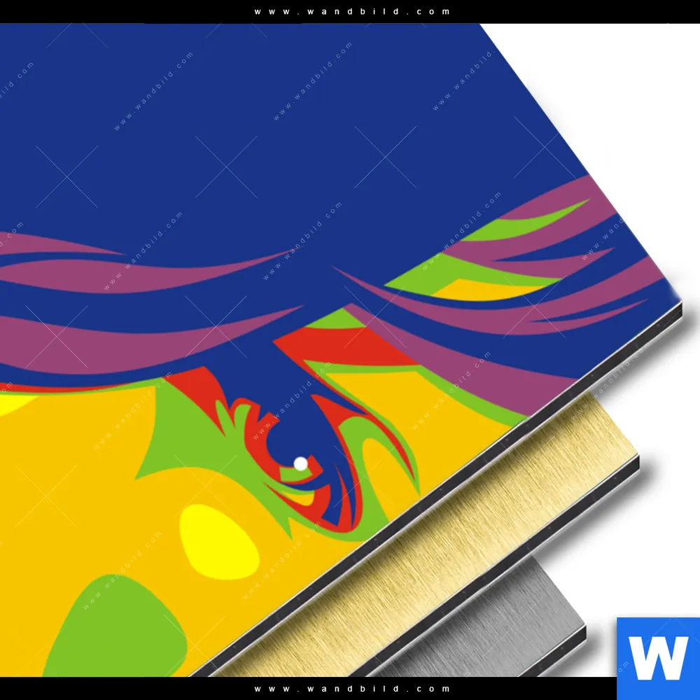 Bitte beachte: Die auf deinem Computer oder Handy abgebildeten Farben der Motive können von den Originalfarben des gedruckten Aluminiumbild gebürstet abweichen. Die Farben werden auf dem Computerbildschirm anders dargestellt, als auf einem gedruckten Aluminiumbild gebürstet. Computer und Handys verwenden das RGB-Farbsystem, während der Druckprozess das CMYK-Farbsystem nutzt. Ebenso spielt die Kalibrierung des Monitors eine entscheidende Rolle.
