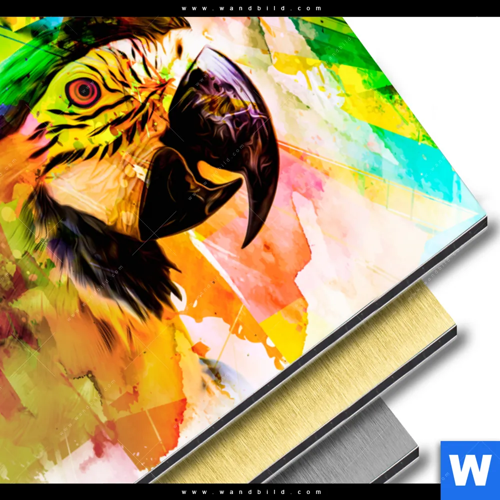 Aluminiumbild gebürstet | Abstrakter Papagei | Querformat