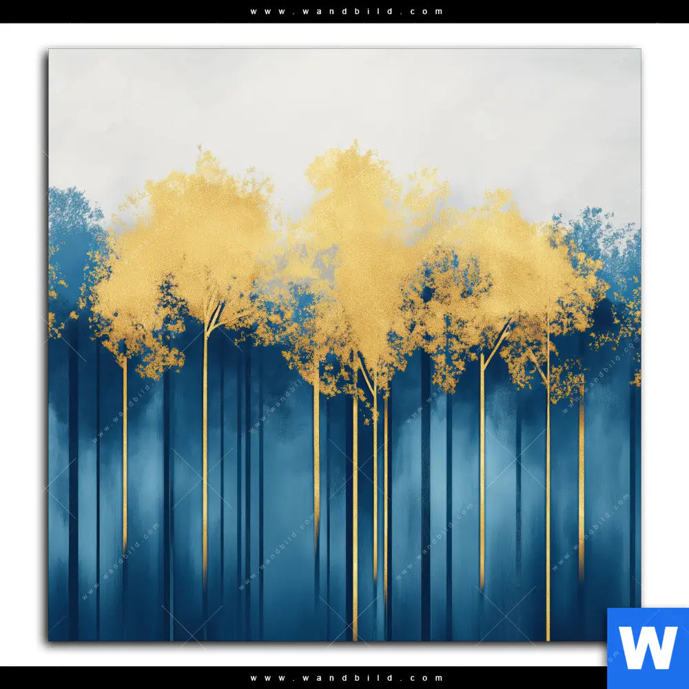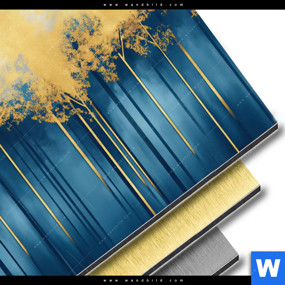 Aluminiumbild gebürstet | Abstrakter Wald - Blau & Gold | Quadrat