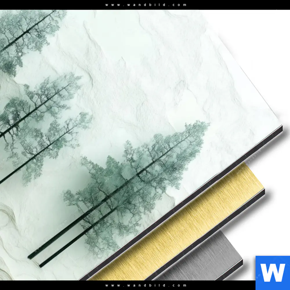 Wald - Bäume, Landschaften Aluminiumbild mit metallischem Effekt inkl. vormontiertem Rückrahmen