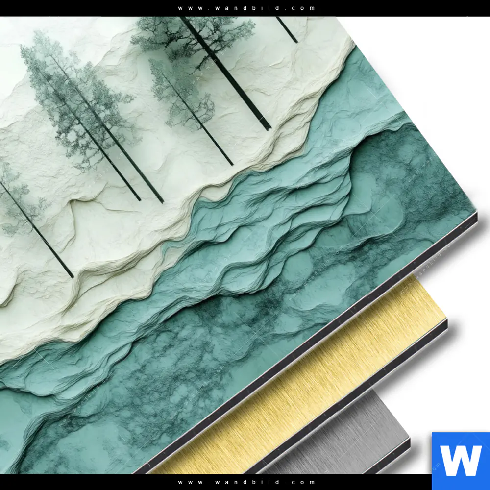 Wald - Bäume, Landschaften Aluminiumbild mit metallischem Effekt inkl. vormontiertem Rückrahmen