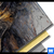 Aluminiumbild gebürstet | Abstrakter Wolf in Gold und Grau | Querformat