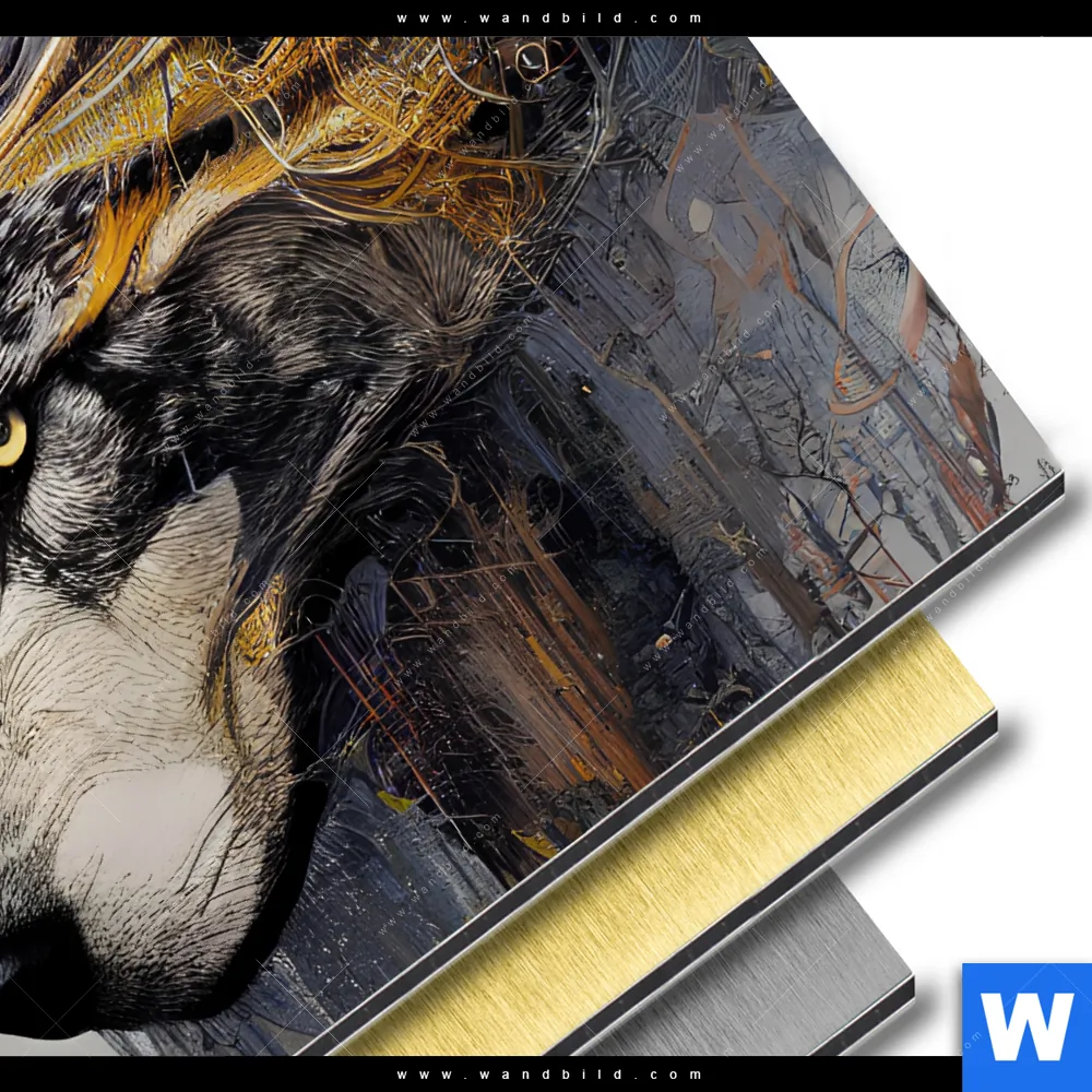 Aluminiumbild gebürstet | Abstrakter Wolf in Gold und Grau | Rund