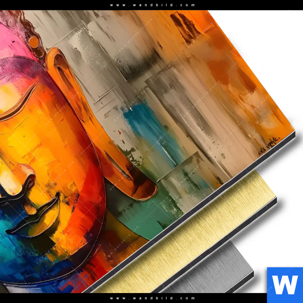 Aluminiumbild gebürstet | Abstraktes Buddha-Gesicht | Querformat