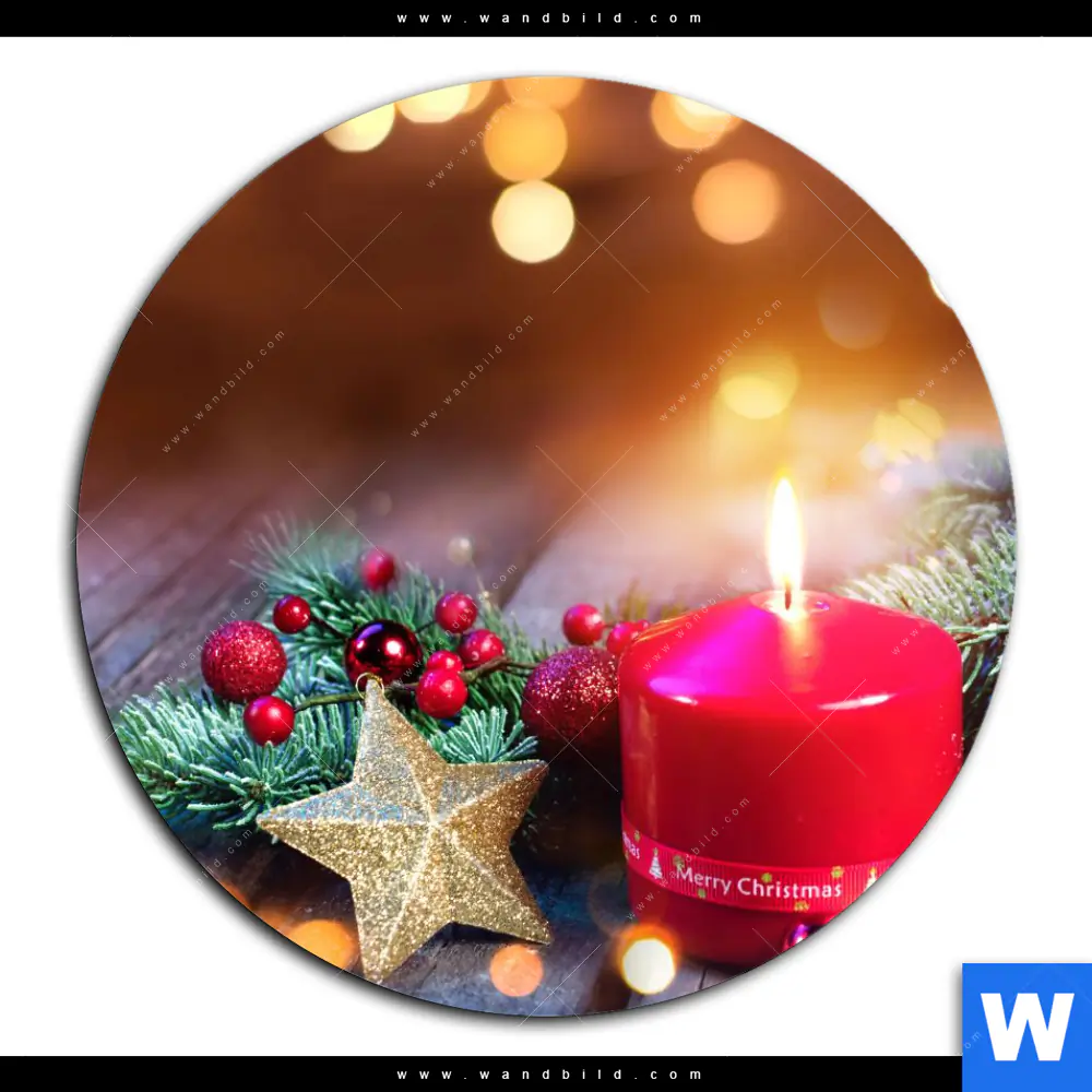 Aluminiumbild gebürstet | Adventskerze mit Weihnachtsschmuck | Rund