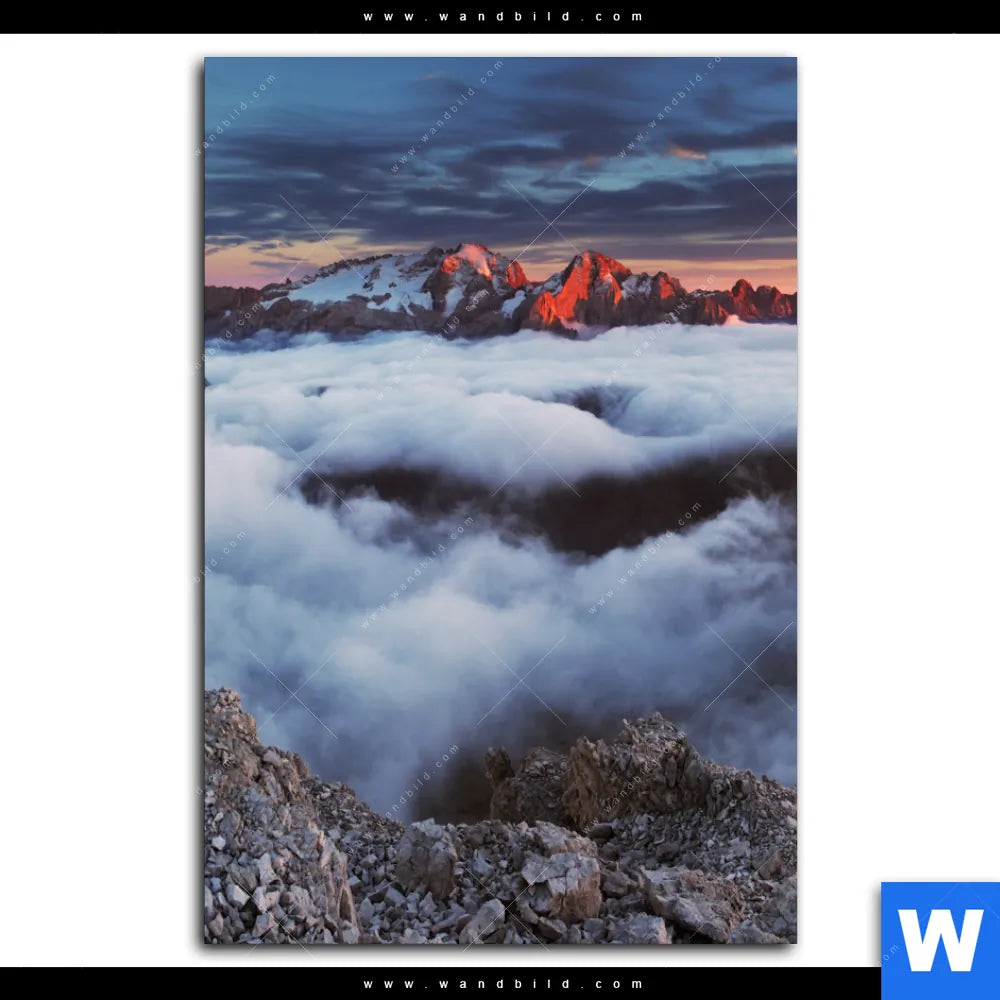 Aluminiumbild gebürstet | Alpen im Nebel | Hochformat