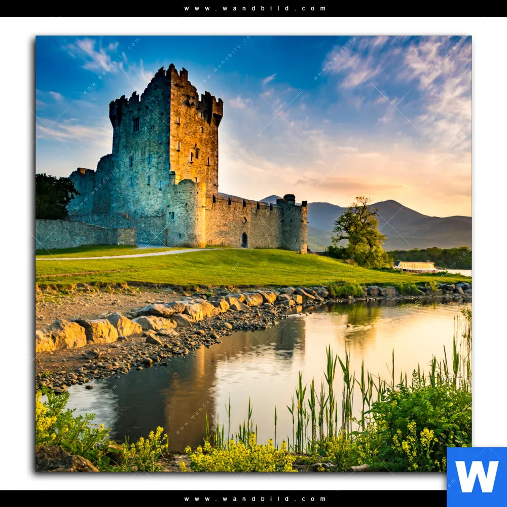 Aluminiumbild gebürstet | Alte Burg mit See | Quadrat