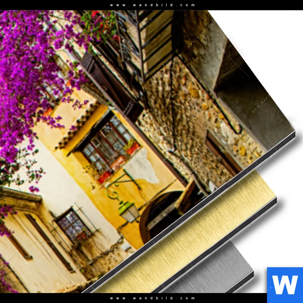 Architektur - Gebäude Aluminiumbild mit metallischem Effekt inkl. vormontiertem Rückrahmen