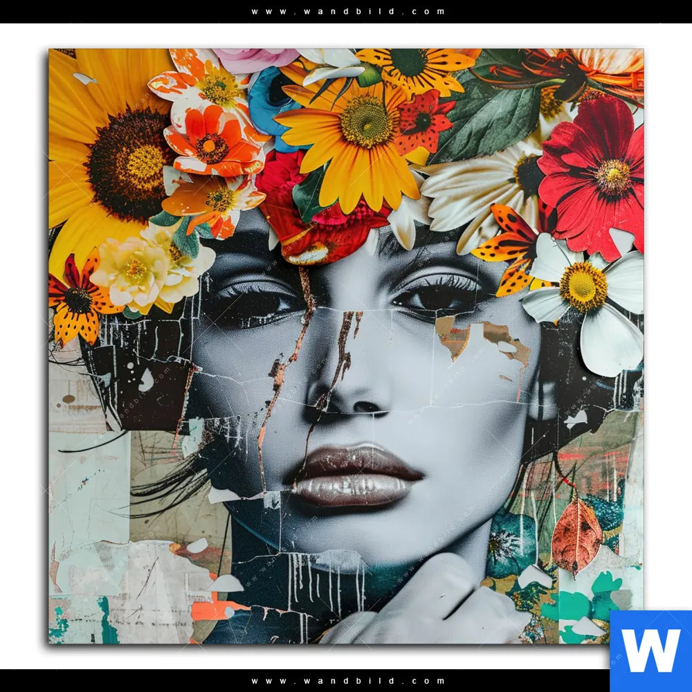 Aluminiumbild gebürstet | Angelina - Frau mit Blumen im Haar | Quadrat